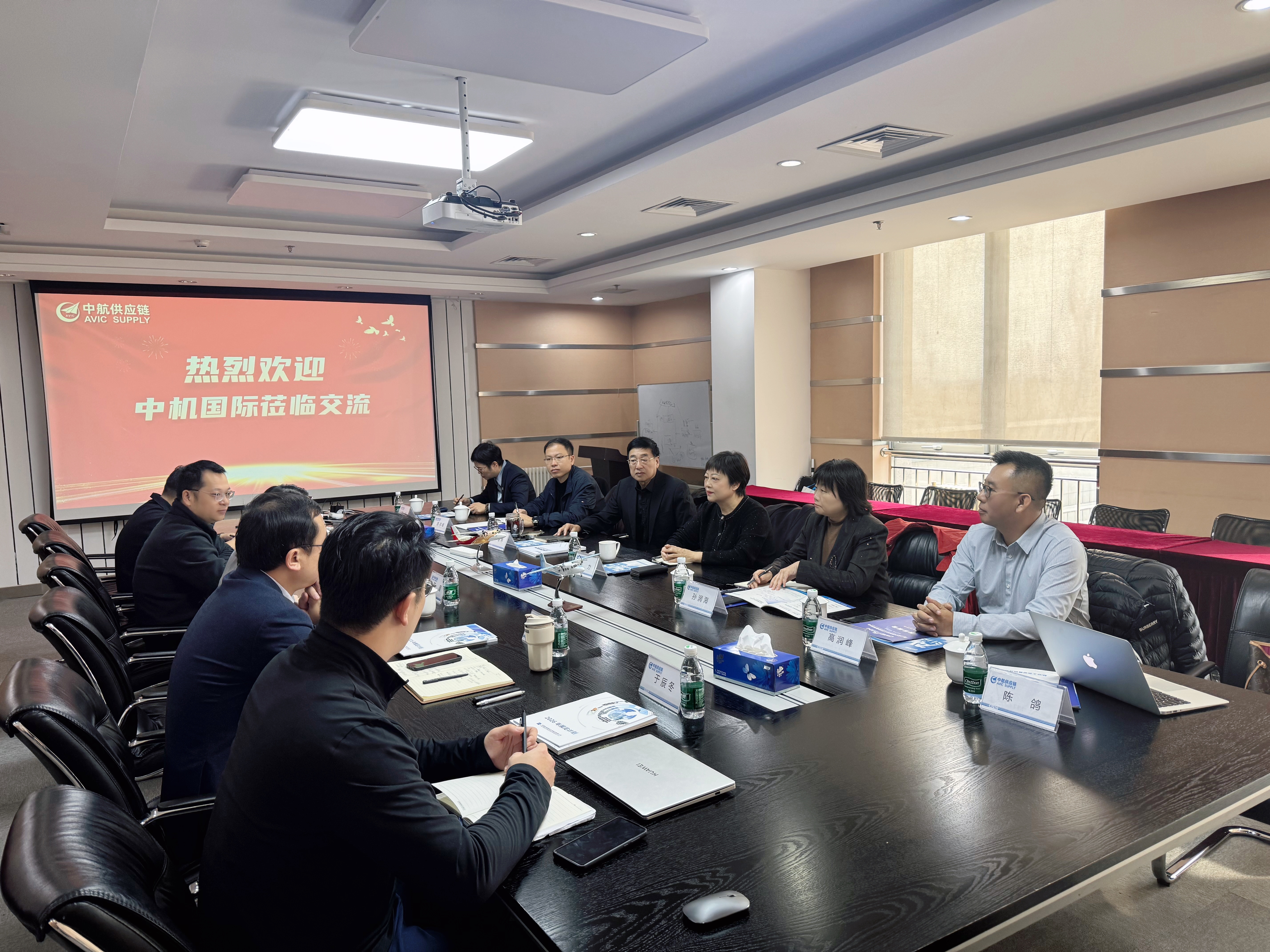 ????中航供應鏈相關人員;中機國際第二事業部、市場營銷及品牌傳播部(黨委宣傳部)以及下屬企業西麥克國際展覽有限責任公司相關負責人一同參會。